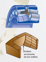 los cuerpos rodantes bajo duras condiciones de funcionamiento. Polución, sobrecarga, alta temperatura, deformación del alojamiento o pérdida de la eficiencia del lubricante, son las principales causas de avería. Cuando el daño inicial se produce, la jaula maciza en latón permite alargar la vida de servicio, favoreciendo así la planificación de un mantenimiento preventivo.